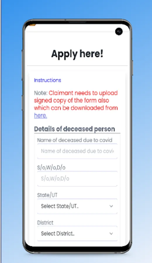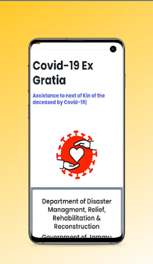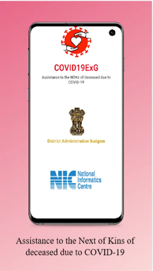 This app/web portal is the only and first of its kind in the UT of Jammu and Kashmir launched to establish a simple yet quick and robust mechanism for disbursing of COVID Ex Gratia to the NOKs of deceased due to covid-19. The NOKs can apply for the COVID Ex Gratia from the comfort of their homes without visiting any office. After proper verification of the case the relief amount will be credited to their bank accounts through DBT mode. The app/web portal has been developed by National Informatics Center Budgam and is available on https://budgam.jk.gov.in/covid19exg
