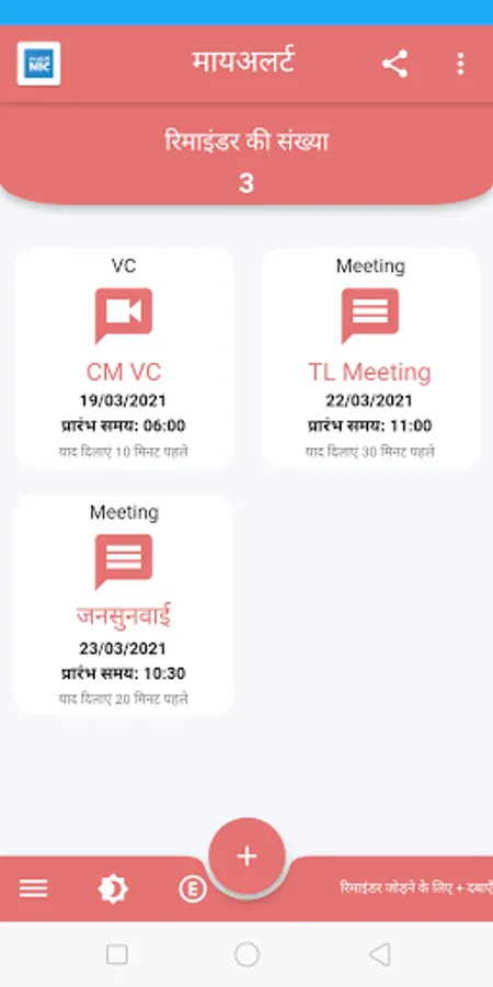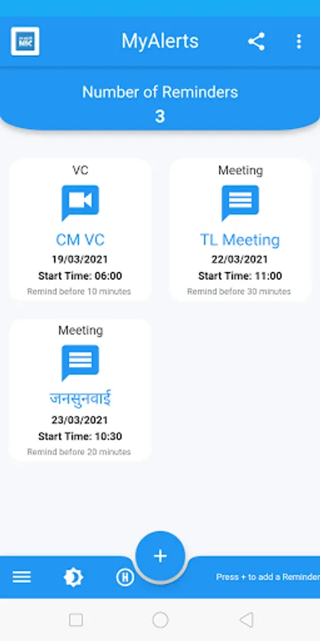 MyAlerts App is base on a personal productivity solution. It is designed and developed by NIC Ashoknagar as a G2E App. It can be used by district administration or the head of any office/ department,
