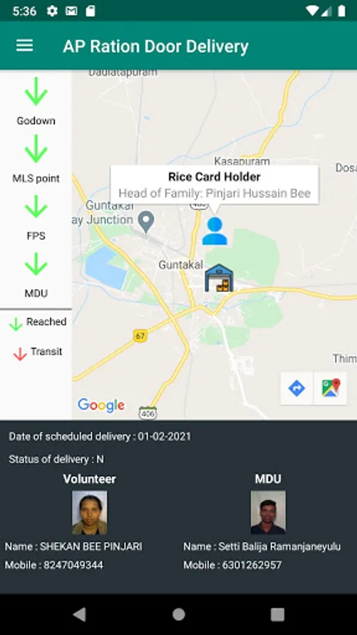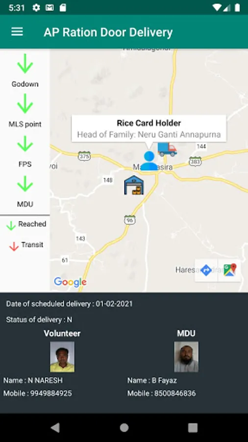 Andhra Pradesh State Food & Civil Supply Rice card holder able to know when and where his ration delivery schedule and status. Both MDU and Volunteer Photographs, Names, Contact Number