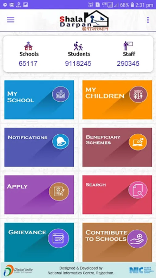 To use this application citizen first need to register within the application by using their mobile number. If mobile number is registered with any student in integrated Shaladarpan portal, then child’s information and its school’s information will be fetched automatically form the Shaladarpan portal. Now user can view school’s information and child’s performance directly through the application.
