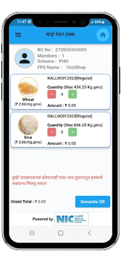 The public Distribution System is a crucial project of the Government of India. To ensure that every beneficiary must get the entitled food grains, this app helps citizens to view their monthly ration entitlement and ration card details. citizens can select commodities and generate QR code that can be scanned by FPS and issue the food grains. Receipts of transaction also be shared online. The information to lodge the grievance eases to resolve their issues on time.