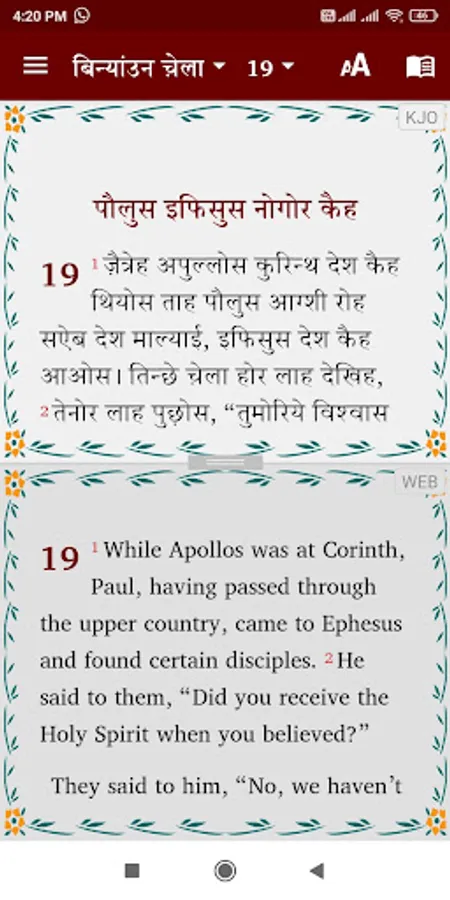 The Kinnauri Pahari Bible app is a collection of Bible text in the Rathwi language (ethnologue: `KJO`) of Himachal, India. Kinnauri Pahari is a Indo Arian language. The New Testament translation of Bible is completed and made available in the print and in electronic. Old Testament is in Progress and will be added as when it is ready.