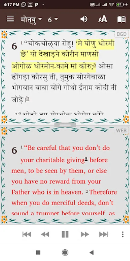 - Audio Bible (Your phone will be able to read out the Rathwi Bareli Bible, verse-by-verse).