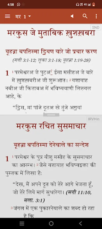 The Sindhi Bible app is a collection of Bible text in the Sindhi language (ethnologue: `snd`), India. Sindhi is a southern Indo-Arian language. The Mark Gospel of Bible is completed and made available in the print and in electronic. Old Testament is in Progress and will be added as when it is ready.
