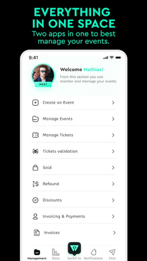 - collaborate with other organizers up to the financial management of the event and sharing the earnings to manage complex events