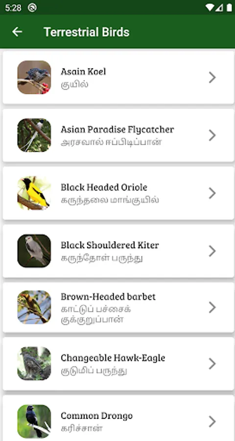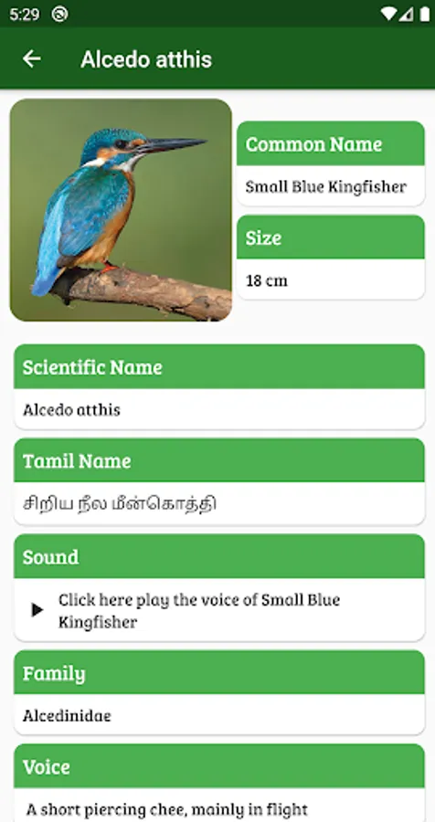 Birds are feathered, winged, two-legged, warm blooded, egg-laying vertebrates. There are 9,026 identified species of birds in the world, of which 1,232 are found in India. The "Patchi" app is designed to showcase the real photos from the field along with identification keys, voice, size, and habitats of the birds. The app contains information about terrestrial birds as well as wetland birds in Puducherry.