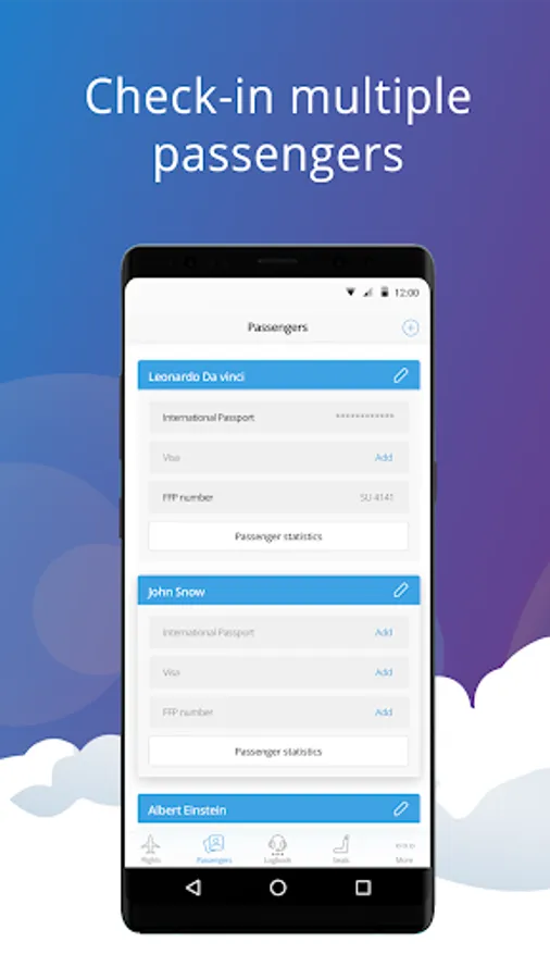 • Track yours and other passengers’ travel statistics, and keep an overview about all past flights and distances covered
