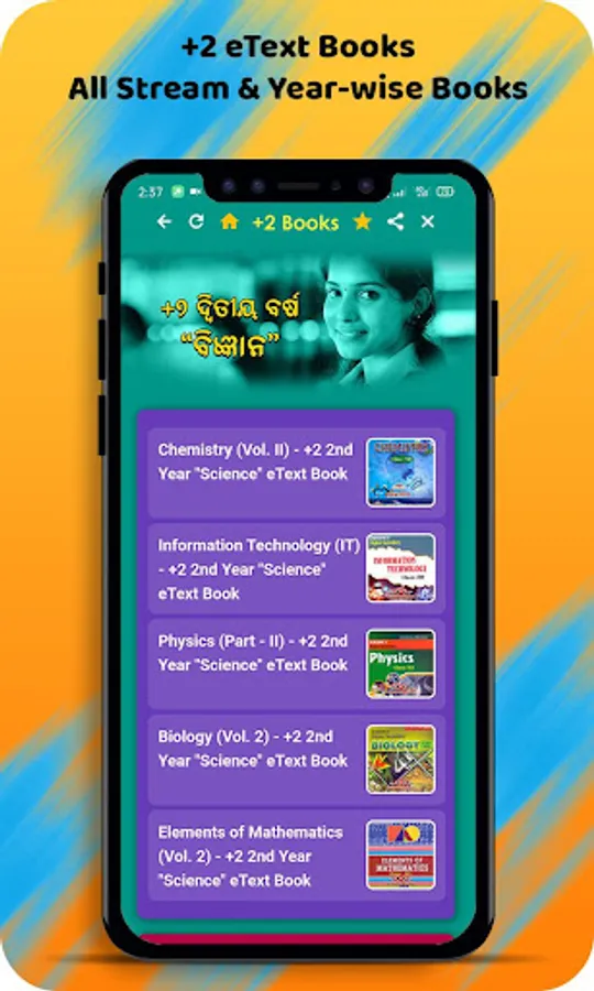 "+2 College Books (Odisha CHSE)" is an app by OdiaPortal Lab. This app is very effective and useful for students who are studying in +2 1st year as well as +2 2nd Year in Arts, Commerce, Science & Vocational Stream under CHSE Odisha or Odisha Higher Secondary Council.
