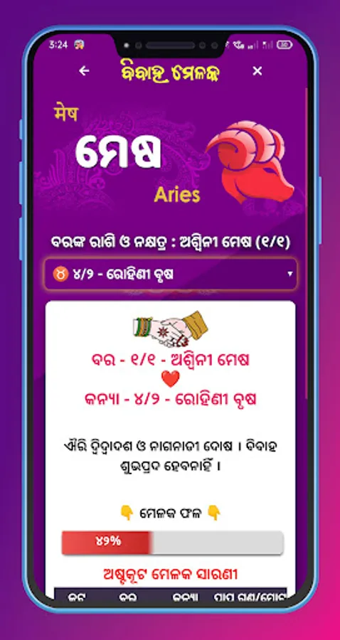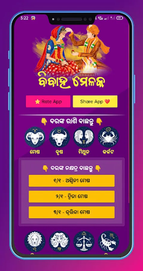 This App have feature to show Bibaha Melaka according to Bride-Groom Nakshatra Melaka, Rashi Melaka. Just Choose Groom Rashi and Nakshatra to Check which Bride is best according to Vedic Astrology.