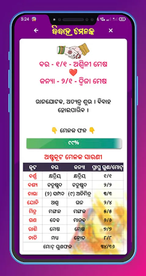 "Odia Melaka" is an Odia Marriage Ready Reckoner or Match Making App based on Vedic Astrology.