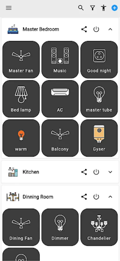 • Select device connected to each switch like Light, Bulb, Chandelier, Curtains, etc