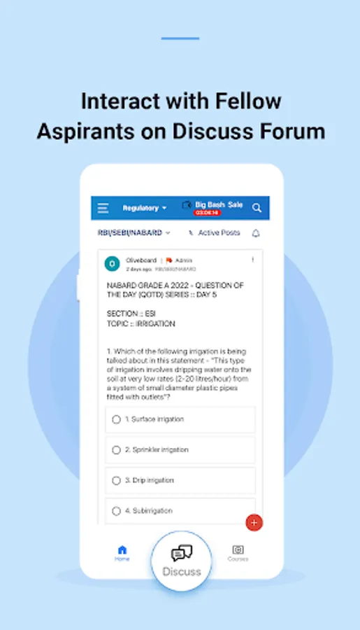 Discuss Forum - Post doubts and discuss them with your peers. Get strategies from toppers, the latest updates regarding offers etc and take part in free quizzes posted.