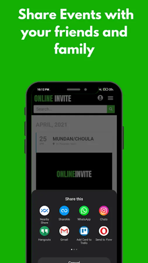 • Send invitations via text message or email by choosing right from your phone contacts.