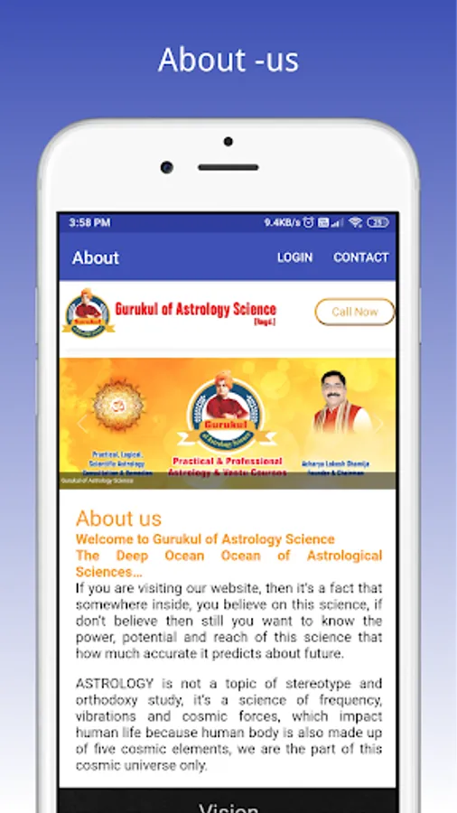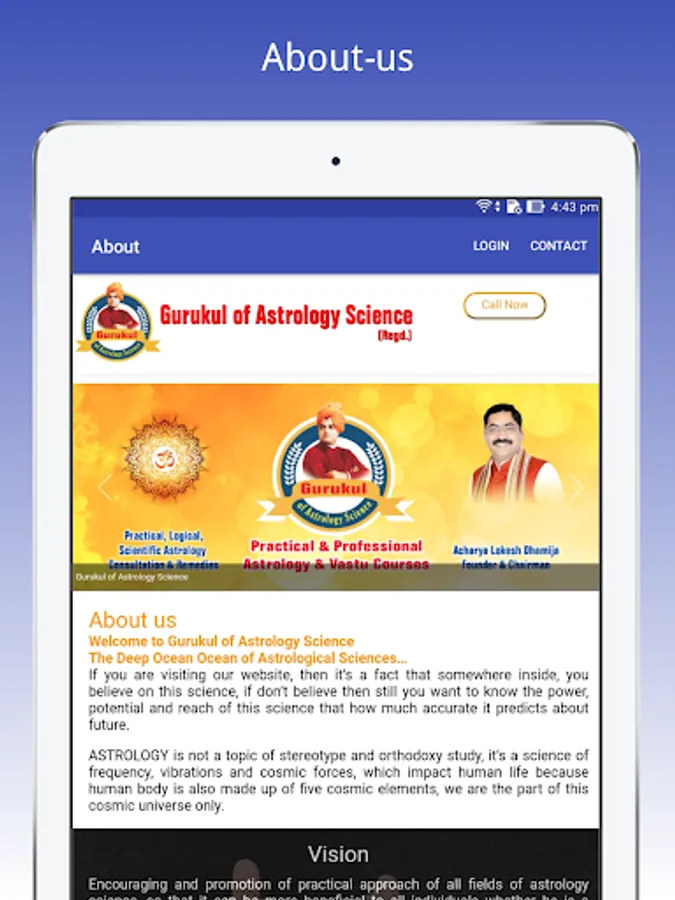 Vision : Encouraging and promotion of practical approach of all fields of astrology science, so that it can be more beneficial to all individuals whether he is a common man or an industrialist.