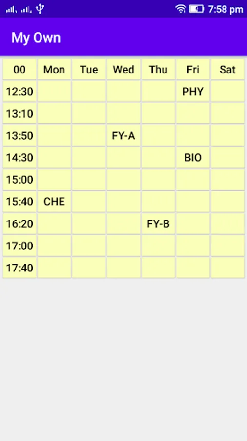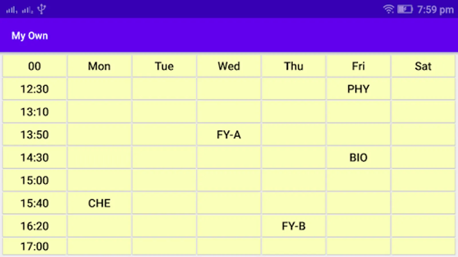 The Minimalistic Time Table app which resembles the school student's time table which is often found on the last cover page of their notebooks.