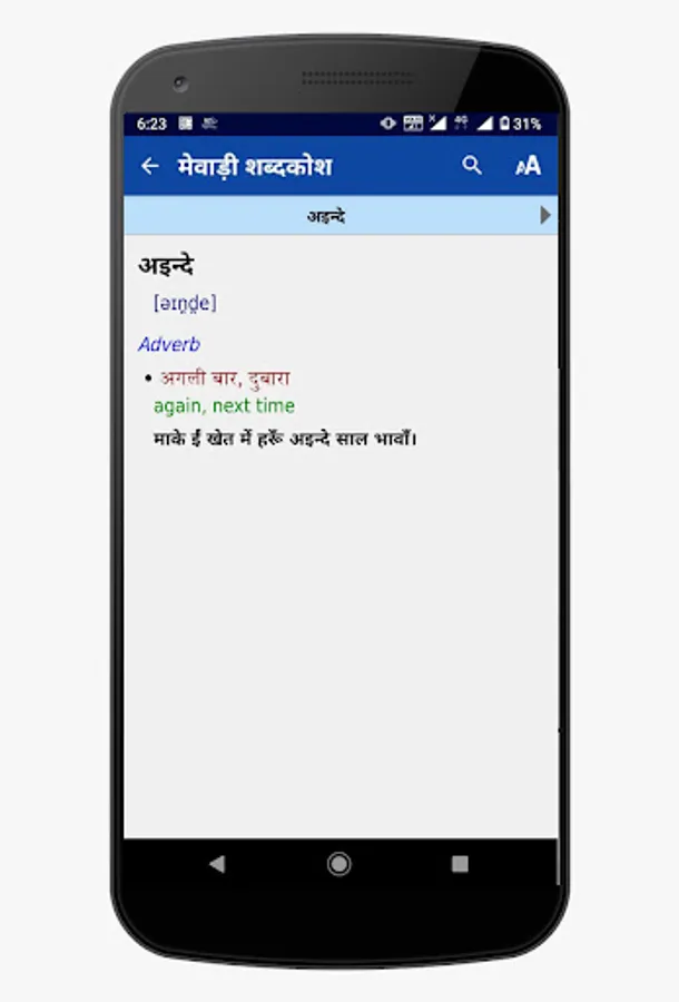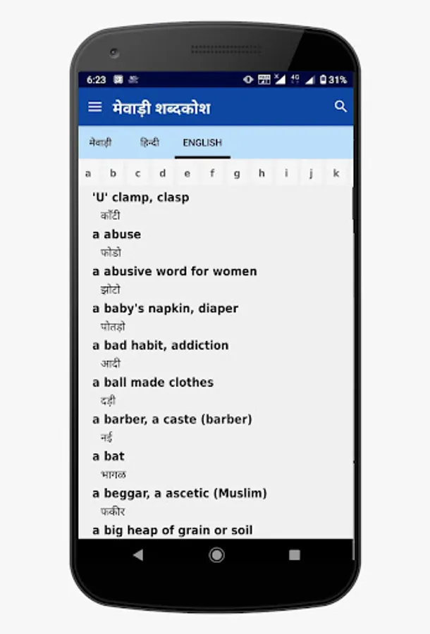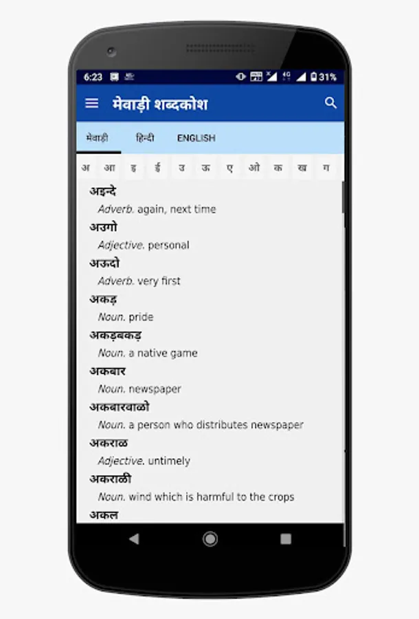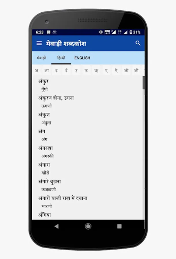 ऐप का विवरण: यह मेवाड़ी भाषा में मुद्रित शब्दकोश का एक मोबाइल संस्करण है