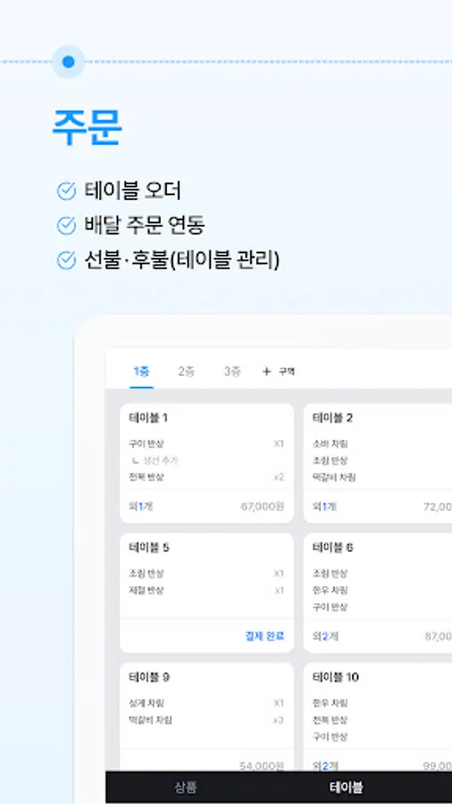 Prepaid, postpaid (table), kiosk, table order, waiting