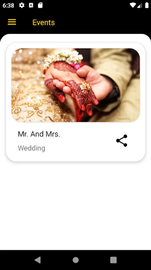 To view an event you need an Event key or Qr code. Event will have all essential information about that Event's Date (Remainder can be set with the help of Google Calendar), Venue (Driving direction info with help of Google Map), Invitation, Albums and Videos.