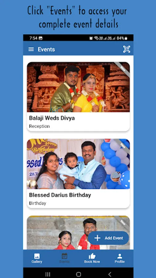 To view an event you need an Event key or Qr code. Event will have all essential information about that Event's Date (Reminder can be set with the help of Google Calendar), Venue (Driving direction info with help of Google Map), Invitation, Albums and Videos.