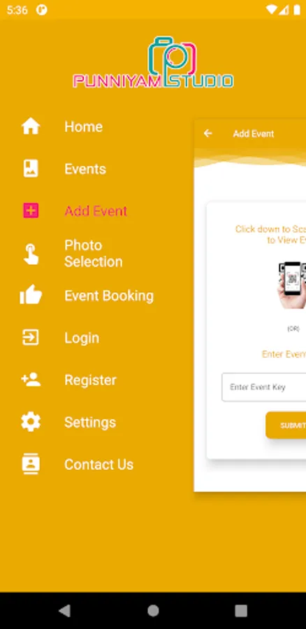 To view an event you need an Event key or Qr code. Event will have all essential information about that Event's Date (Remainder can be set with the help of Google Calendar), Venue (Driving direction info with help of Google Map), Invitation, Albums and Videos.