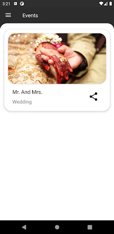 To view an event you need an Event key or Qr code. Event will have all essential information about that Event's Date (Remainder can be set with the help of Google Calendar), Venue (Driving direction info with help of Google Map), Invitation, Albums and Videos.