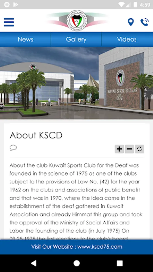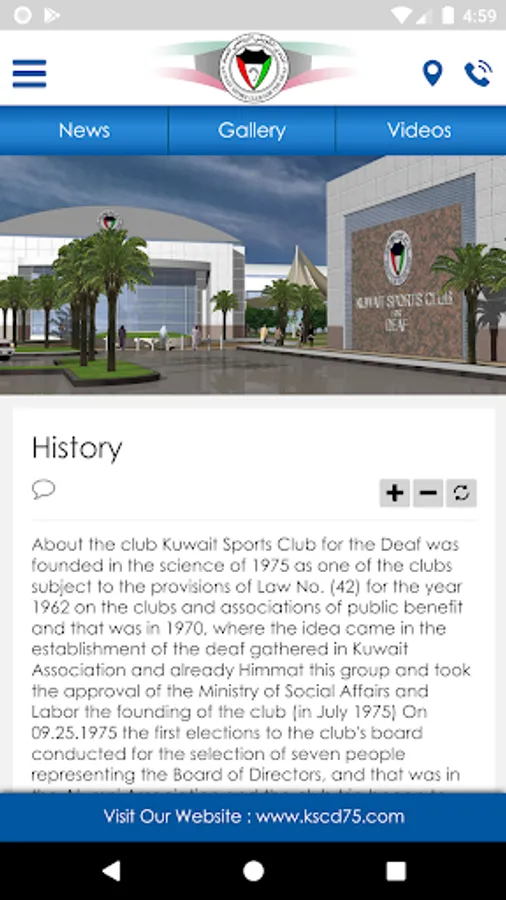kscd75 app is launched by Kuwait Sports Club for the Deaf. For our Kuwait Sports Club related videos, news and updates, please download kscd75 app & for current updates please visit www.kscd75.com. Kuwait Sports Club for the Deaf was founded on 1975 with few members now we have a board of directors including 11 members. Kuwait Sports club was under the control of the Ministry of Social Affairs & Labor and now under the control of Public Authority for Youth and Sports.