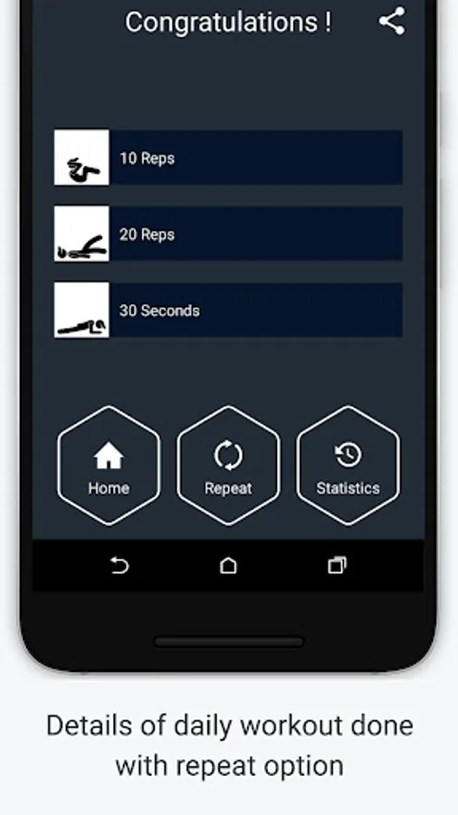 You can also track your progress via statistics and share it with your friends via Facebook, Twitter, Whatsapp, Email and more!