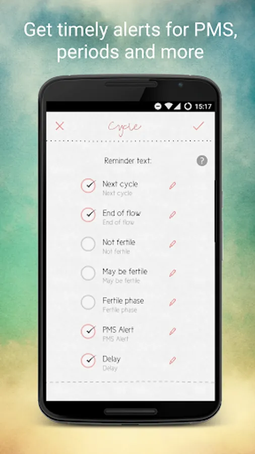 - Personal information: To insert reminders for cycle phases into the device calendar (No other confidential information is accessed. No emails are sent without permission)
