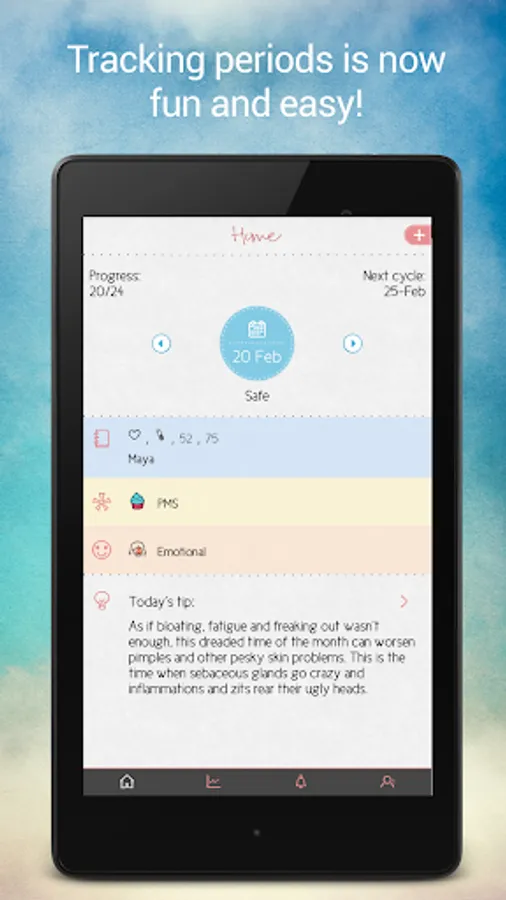 Maya is an easy and fun to use period tracker (menstrual cycle calendar). Use Maya to track your periods, related symptoms, mood swings, pregnancy and your overall health.