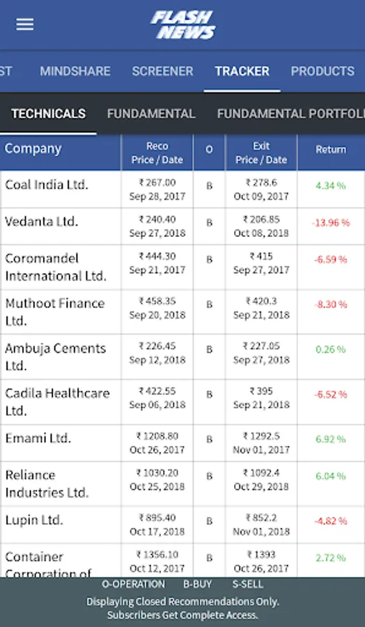 • Call Tracker displays status on stocks recommended in the past 12 months.