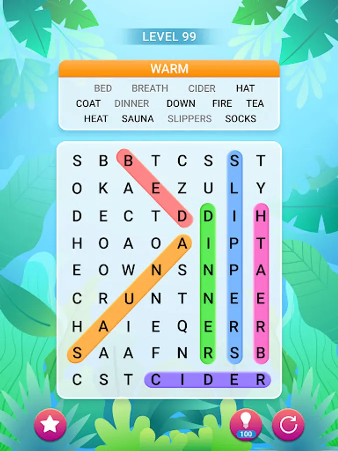 As easy as taking a walk in the park, find words that are hidden in the letter grid related to a common theme. Swipe your fingers to form the words that are hidden in plain sight. The puzzles get trickier as you progress while gaining more wisdom!