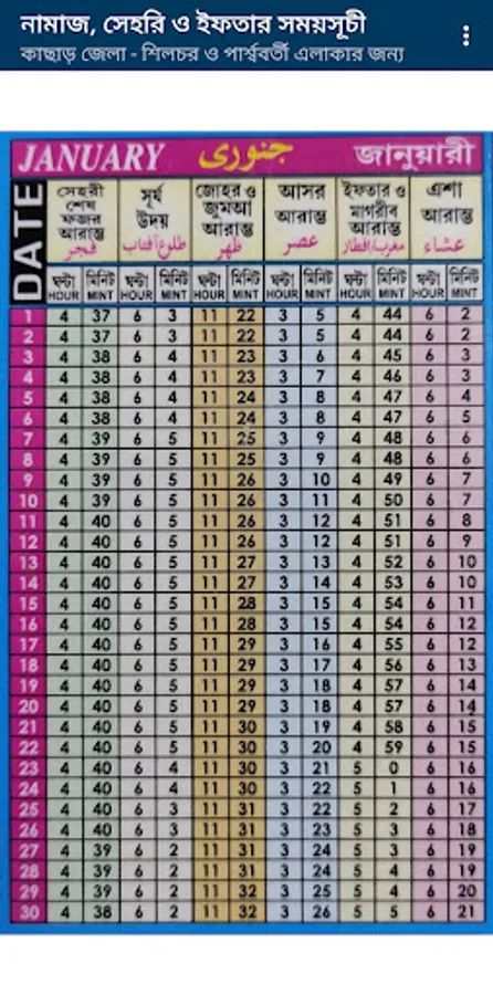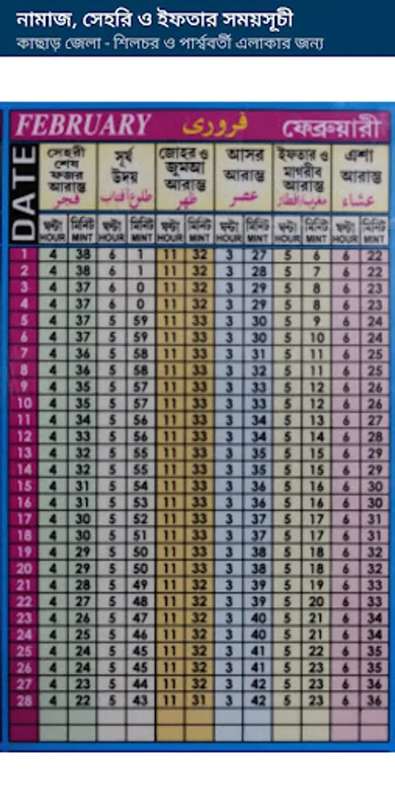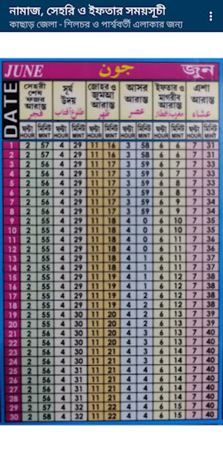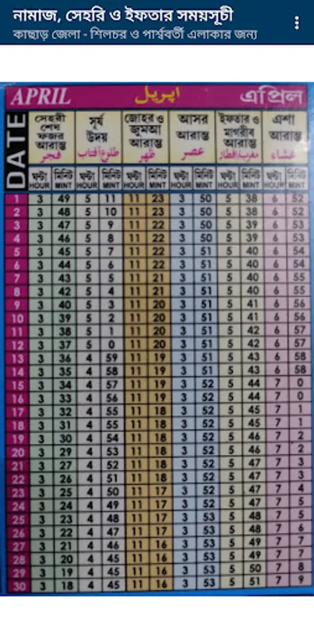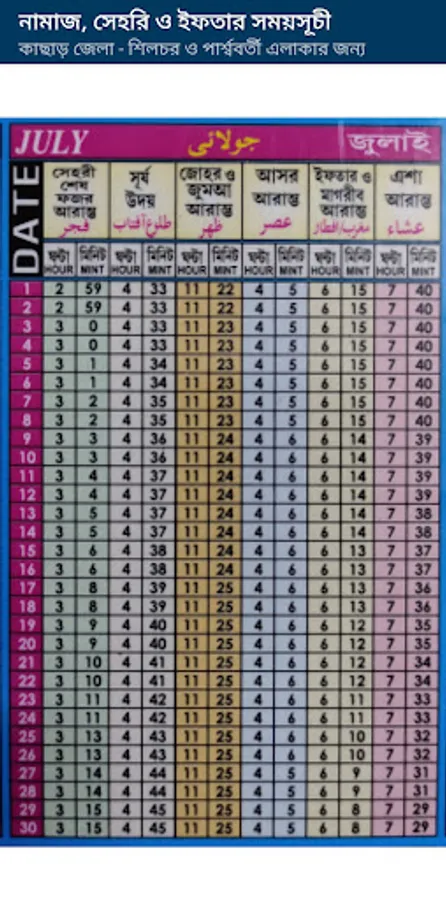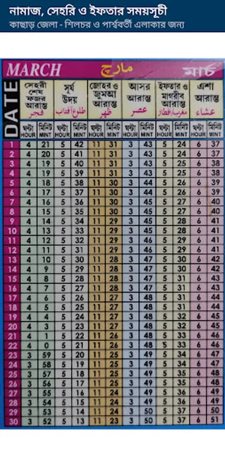 Please find the Namaz Sehri and Iftar timing for Cachar Silchar & nearest places for lifetimebl timing.