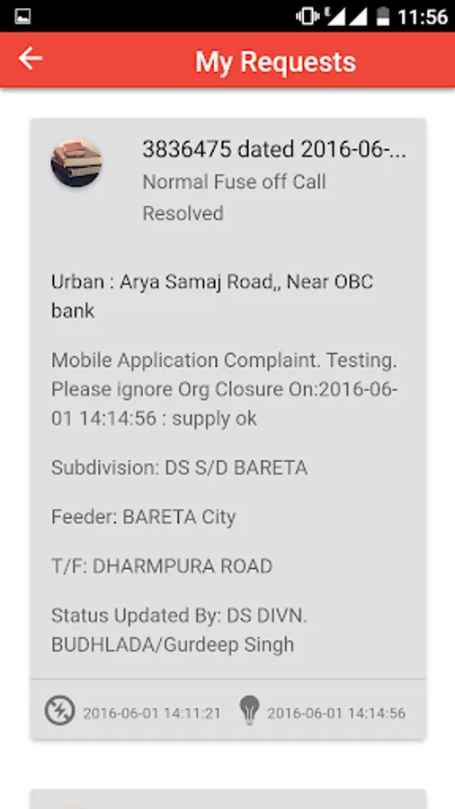 * View Status of your complaints/ requests