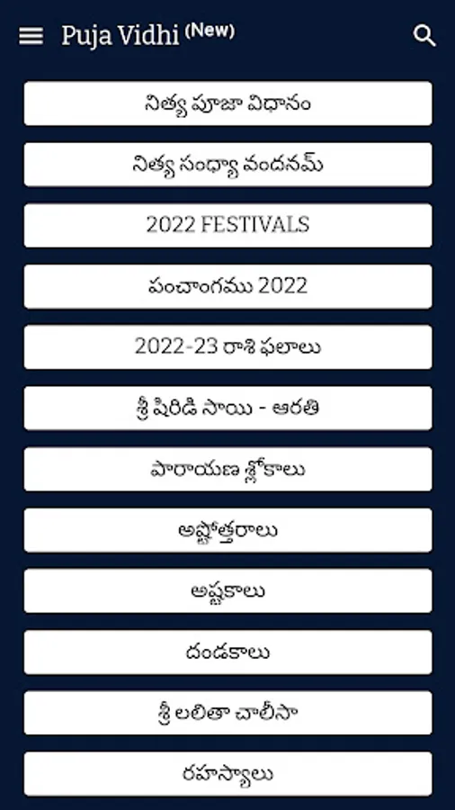 Following are Suktam, Stotram, Ashtak, Arti, Sahasra Namavali, Mangalashtake, Janan Shanti :