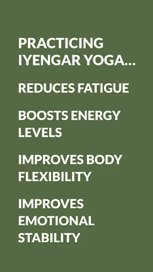 Improves Posture: With minor adjustments to improve alignment through Iyengar Yoga, small muscles that are often ignored become stronger and as a result, enable you to sit and stand straighter, giving you more energy, less pain, and increased confidence.