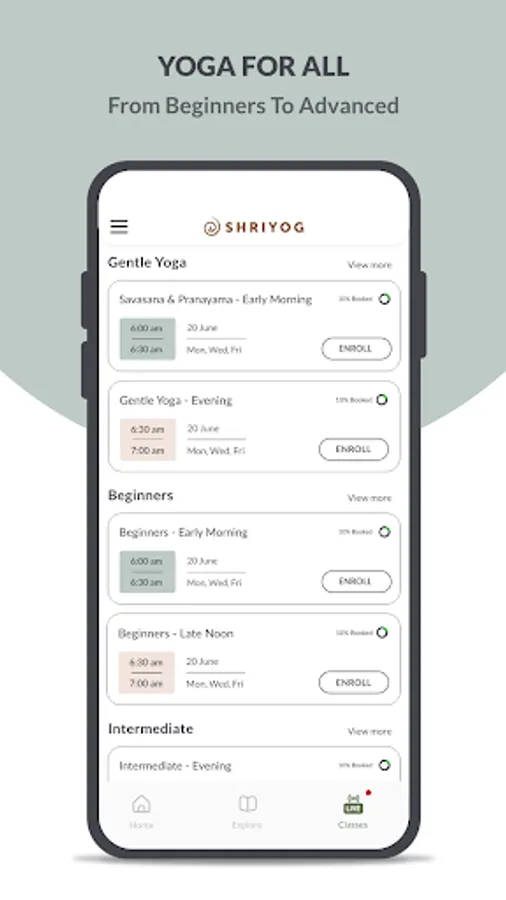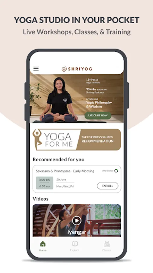 Convenient Access: Join live yoga classes from your smartphone or web browser anytime, anywhere, only on Shriyog yoga app.