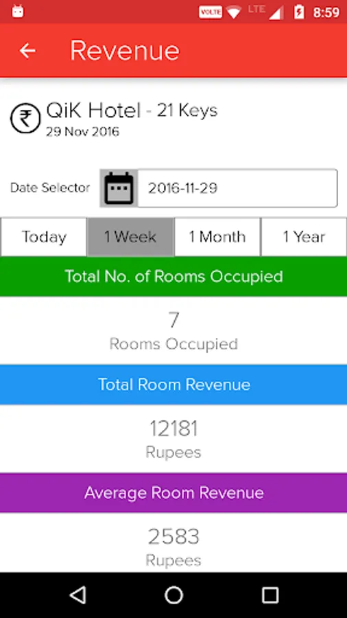 Built with beautifully intuitive interface, Owners App provides hoteliers a detailed view of the real-time reports which are as follows: