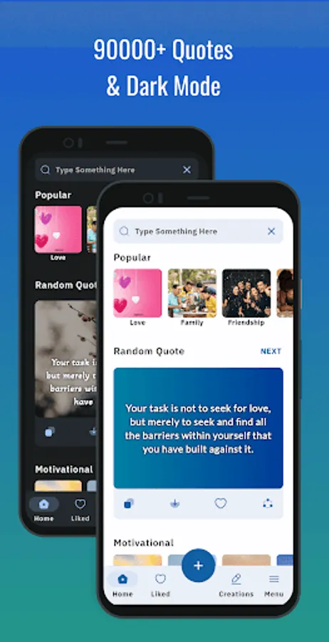 1. Need quotes app with large collection of quotes , saying and status with many categories like love , motivational , sad etc.