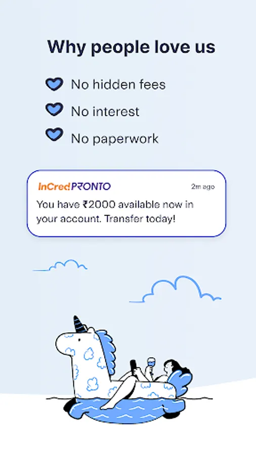 InCred Pronto gives users instant hassle free access to their salary, whenever, wherever. It features a one-time repayment, which means no EMIs or hefty interest rates.