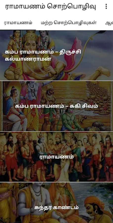 Ramayanam one of well known epic in the country. our app has explanation given by leading Tamil speakers on Ramayanam.