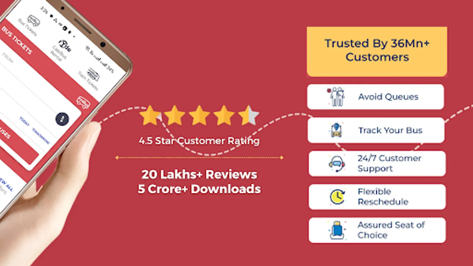 India's Most Preferred Bus Ticketing App - 5 Cr+ Installs, 24 Lakhs+ Reviews.