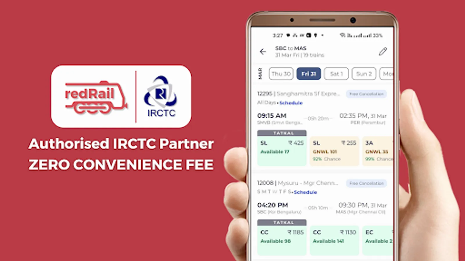redRail by redBus is the IRCTC Authorized Partner app for booking train tickets.