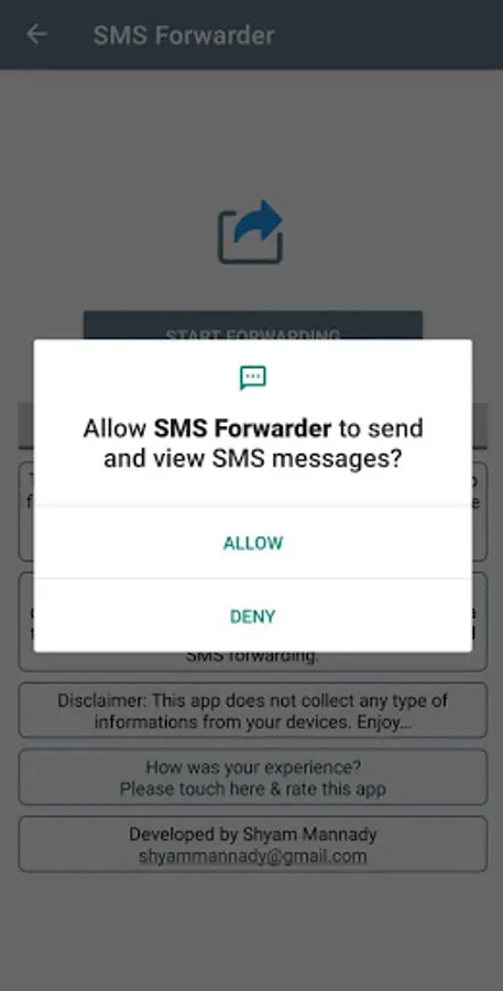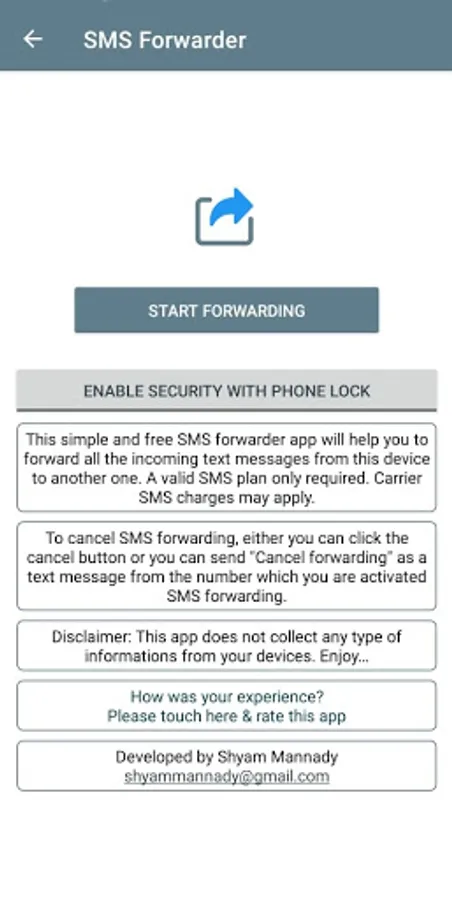 This simple and free SMS forwarder app will help you to forward all the incoming text messages from this device to another one. A valid SMS plan only required. Carrier SMS charges may apply.