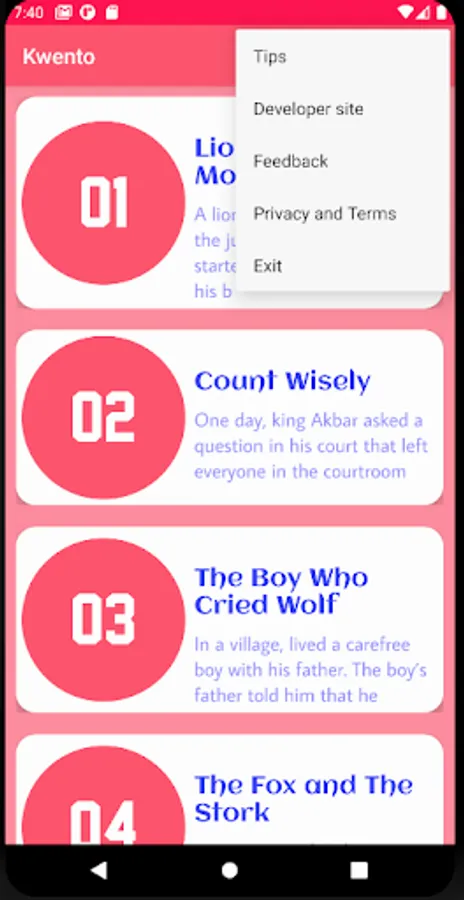 Tips, Privacy and terms, Developer site, feedback and etc...