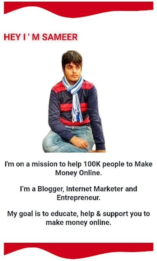 Sameer is going to teach you Online earning ways, How you can leverage your free time on the internet and make money.