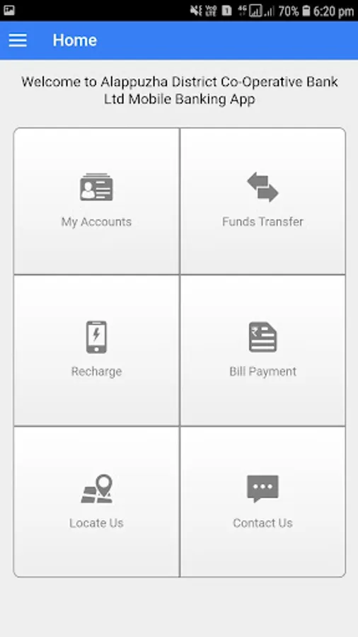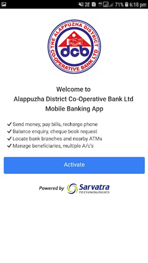 The Mobile Banking facility of Alappuzha District Cooperative Bank has been introduced with the objective of enabling mobile, as one more channel for convenient banking, which including Funds Transfer in real time, and at any point of time using Mobile Device. Banking made easier, now carry out your financial and non-financial transactions anytime anywhere through your mobile phone with ADCB. It's simple and convenient way to perform banking services when you are on the go.
