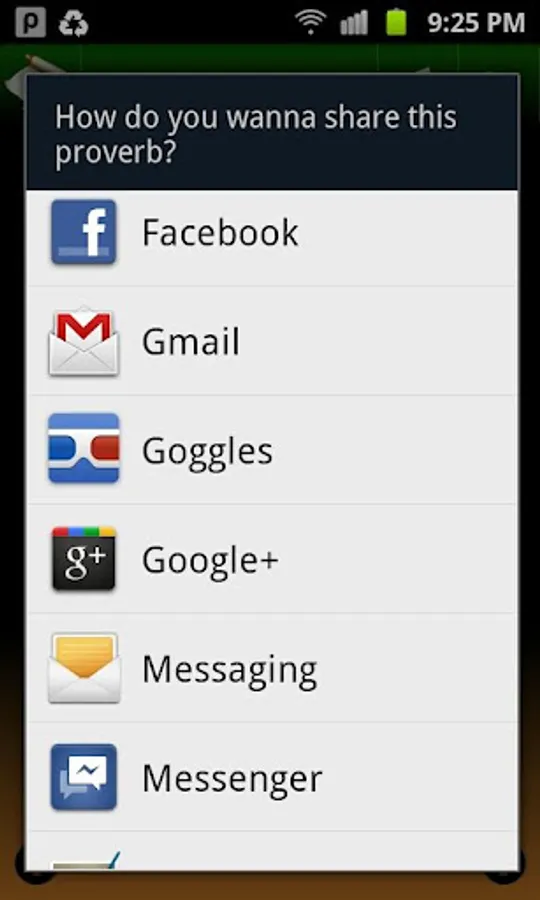 * Social sharing of the proverb screenshot as image. It can be shared via Facebook, Google+, Twitter, Email Clients, Bluetooth etc.,.
