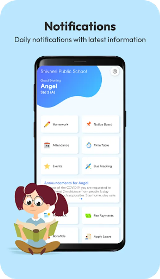 2. The app offers several features, including daily notices, school announcements, online fee payments, and updates sent straight to parents' mobile devices.