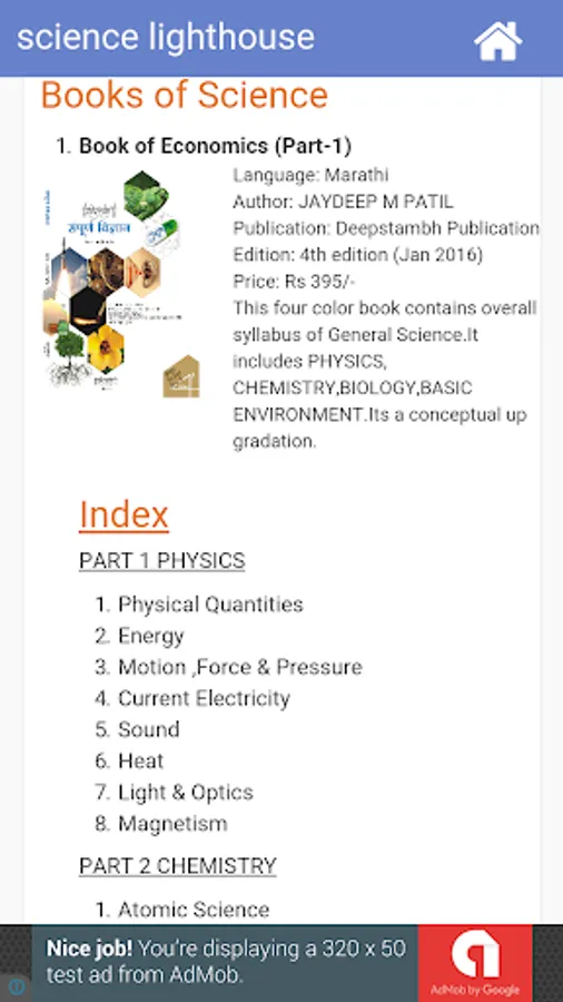 This is free online Mobile Application in multiple language of general science.This is useful for students of all sciences as well as competitive aspirants like UPSC,MPSC,FOREST,RRB,STAFF SELECTION .Also beneficial for NTSE,MTS,SCIENCE OLYMPIAD at school level