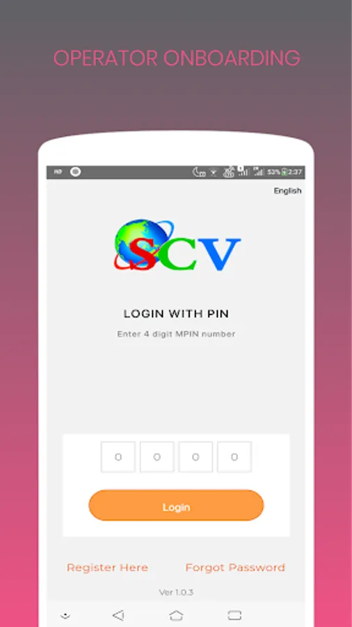 Register: To continue to use this App, You must be SCV Operator. Register through SCV Operator Registered Mobile Number.